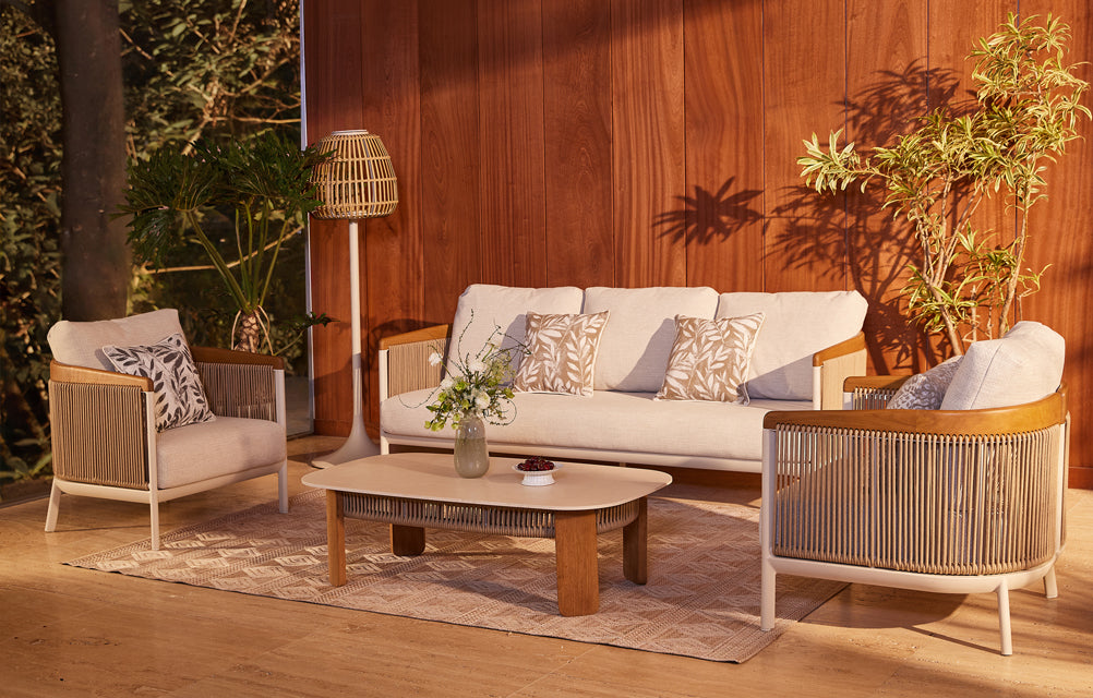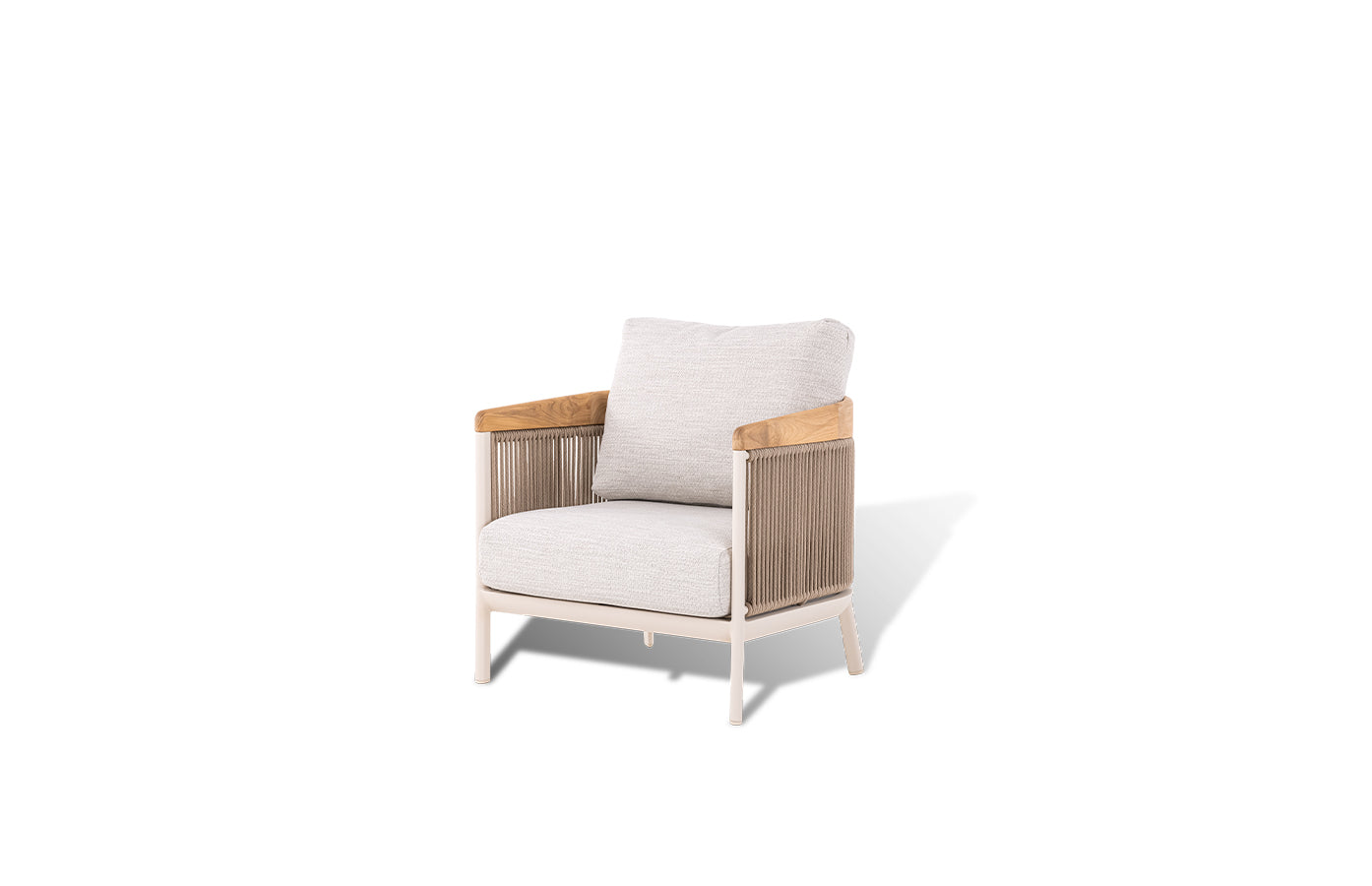 - Materiales Premium: Estructura de aluminio, cojines en tela Olefin y detalles en auténtica Madera de Teca.